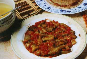 2.将茄子、番茄、蒜、辣椒、孜然和盐放在锅里用中等火煮,并不时搅拌,直到水份煮干;